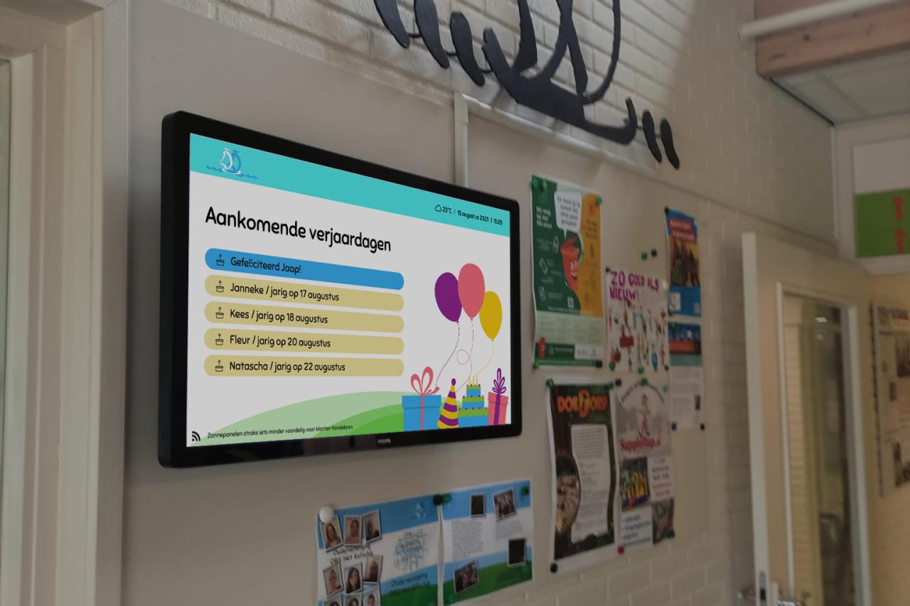 Door zichtbaar te maken welke activiteiten plaatsvinden, worden bewoners gestimuleerd om samen deel te nemen. Het tonen van verjaardagen en bijzondere momenten nodigt uit tot felicitaties en gesprekjes, waardoor bewoners zich gezien en gewaardeerd voelen. Het weer- en nieuwsblok biedt aanleiding voor gesprekken en gezamenlijke herinneringen. Ook kunnen bewoners en familie foto’s of berichten aanleveren, zodat het scherm een levendige en herkenbare plek wordt.