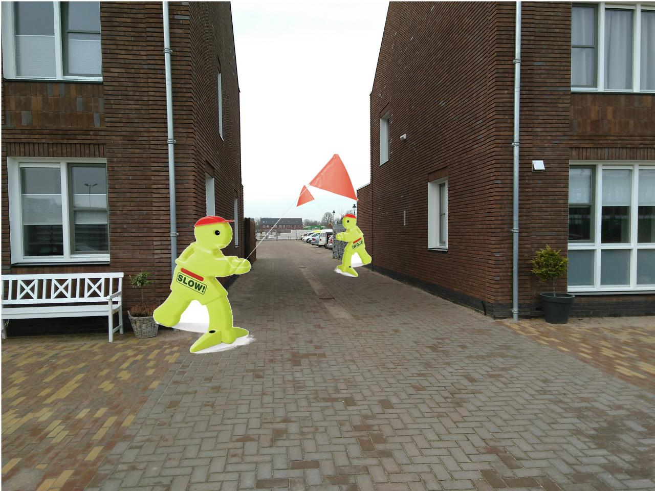 Om mensen hierop te attenderen zouden we graag 4 verkeersmaatjes willen neerzetten.