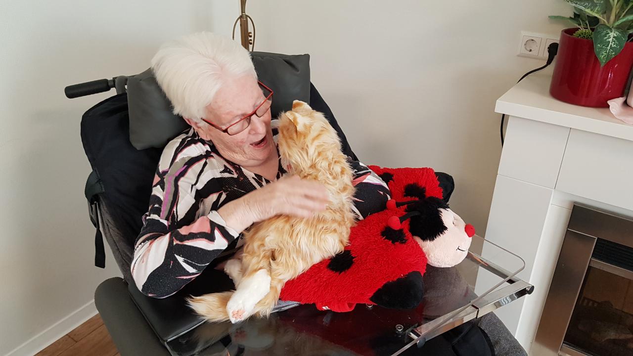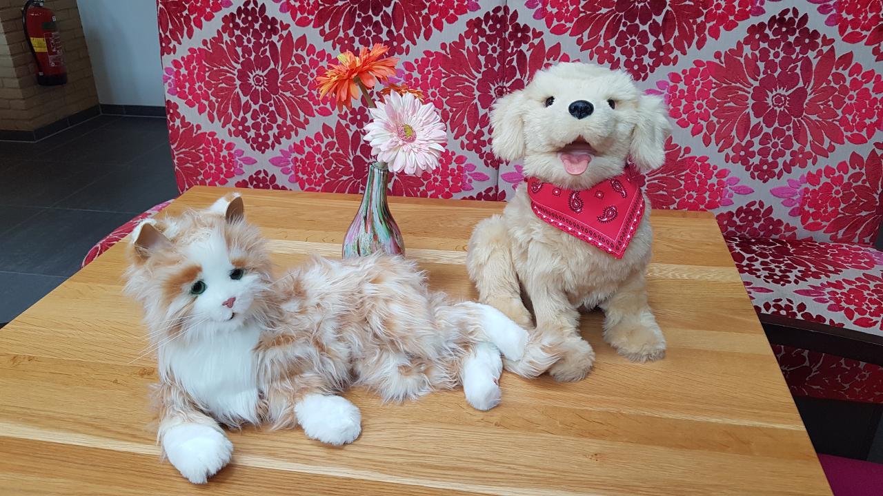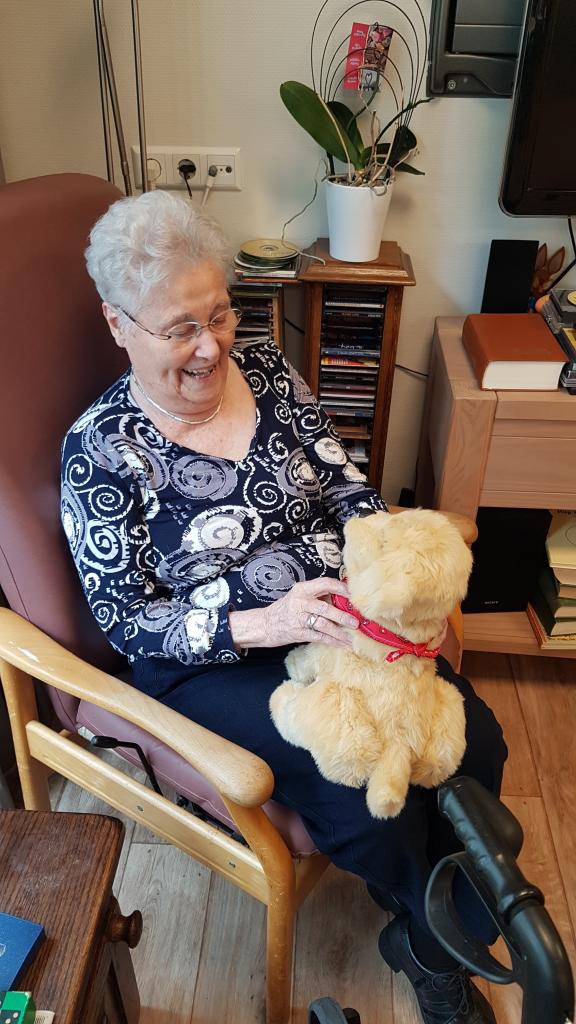 “ De dementie hond en kat zijn eind Mei geleverd. Echt fantastisch hoe bewoners hierop reageren. Ze willen ze aaien en vasthouden. Het geeft ze echt iets extra’s om passief van te genieten. De dementiehond en –kat zorgen voor interactie. Er wordt over gepraat onderling en er komen herinneringen naar boven, maar het geeft ook geborgenheid.” vertelt Laura Pico. Al met al een succes!