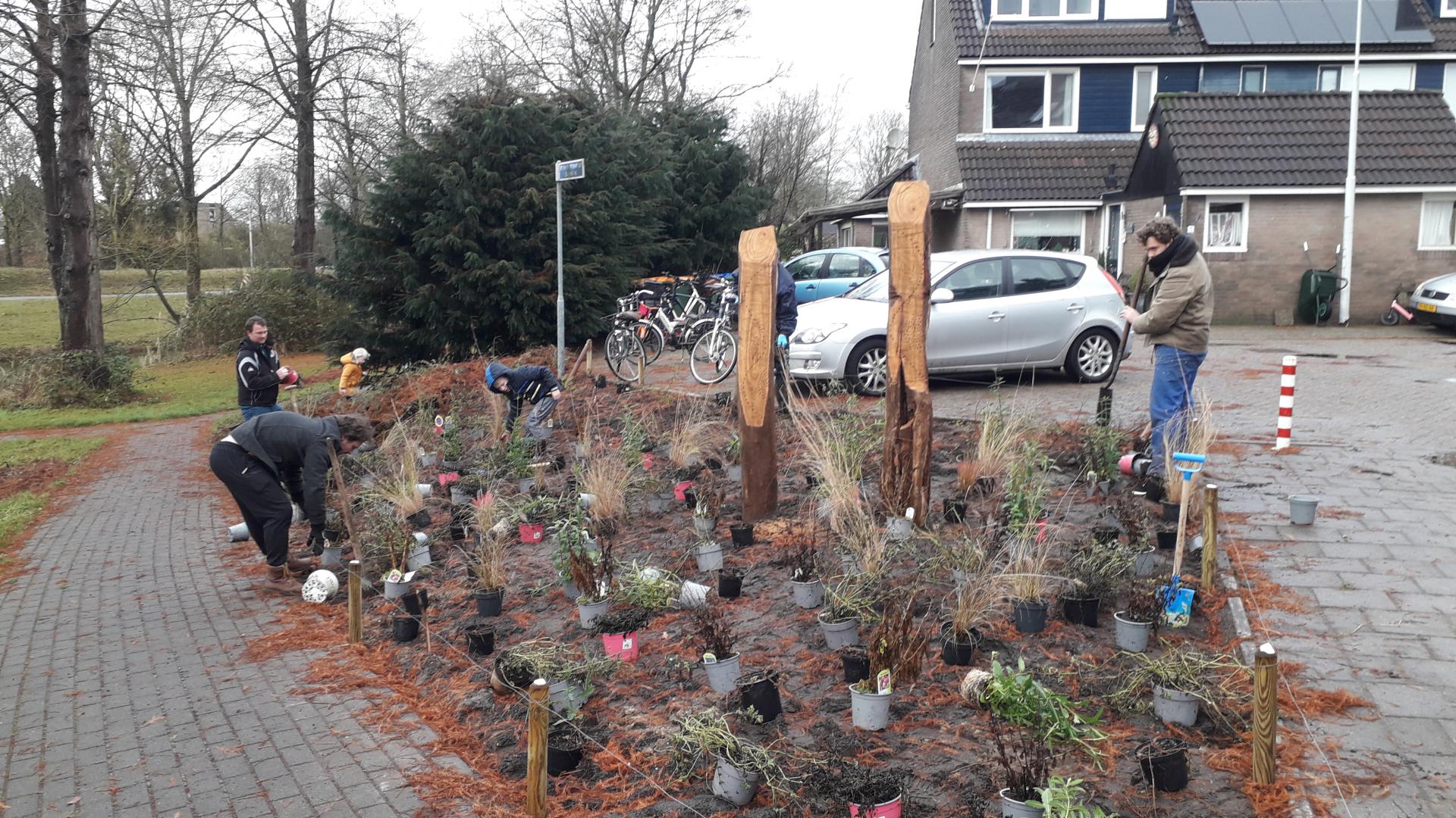 En dan aan de slag en planten kopen bij verschillende tuincentra. Gelukkig heeft Jeroen Bouw van de Vereniging Zeeheldenbuurt een aanhanger om al die planten te vervoeren.