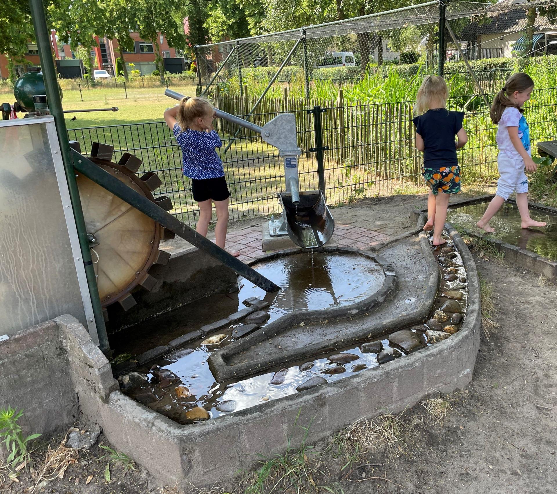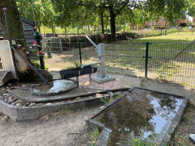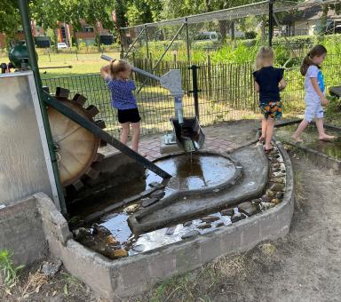 Belangrijk was dat onze waterpompinstallatie voor kinderen aan vervanging toe was. Regelmatig kwam er geen water meer uit waar kinderen dan mee konden spelen. We hebben dan ook een volledig nieuwe installatie geplaatst, zodat pompen nu makkelijker gaat maar ook water ter beschikking is voor het spelen met water. (zie foto’s)
