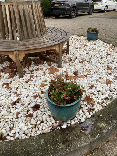 Op 21 november zijn de plantenbakken aangepakt en voorzien van nieuwe plantjes, onder andere viooltjes en bergthee plantjes.