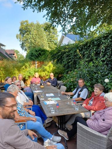 Daarna gaan we naar het kerkhof waar Henrico Hendriksen, geen familie dus, ons begeleidt en informeert over de personen die begraven liggen en allen een belangrijke rol vervulden in het verzet of anderszins. Henrico is de schrijver van het boek de Wormshoef, dus iedereen wordt uitgenodigd om na te praten in de Wormshoef. Er zijn inmiddels bijna 40 personen aanwezig.