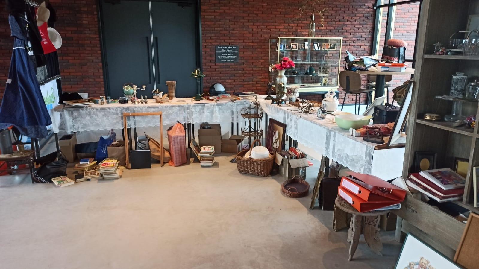 Op 27 september hebben we ’s middags eerst een brocantemarkt georganiseerd in Muziekcentrum Lunteren. Gelukkig konden we binnen opstellen, want het was de hele dag stortregen, waarschijnlijk om die reden weinig bezoekers. Maar degenen die er waren hebben veel mooie oude spullen te pakken gekregen.