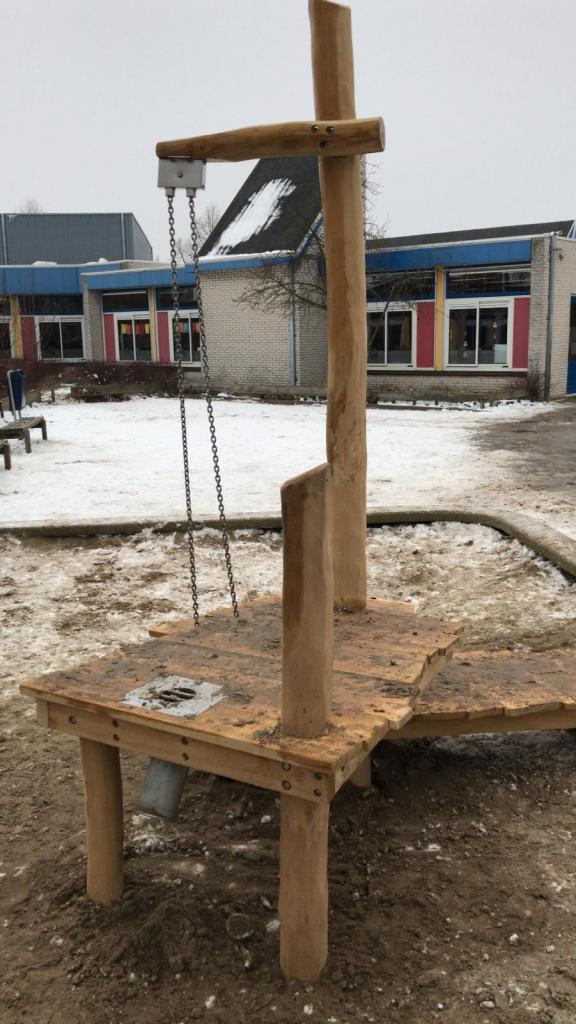De zandwerkplaats staat er nu bijna een maand en is al niet meer weg te denken van het schoolplein. Het is een groot succes. De Beatrixschool spaart nu verder voor nog meer speeltoestellen op het plein!