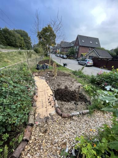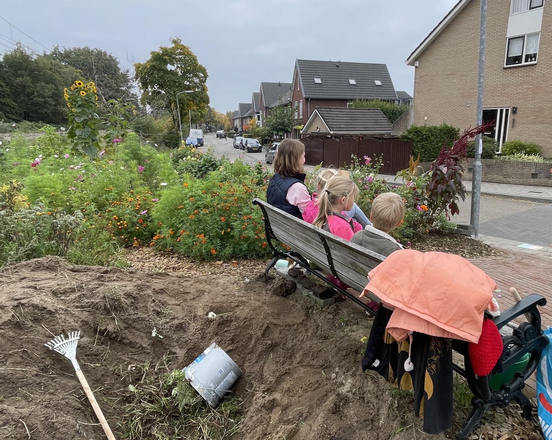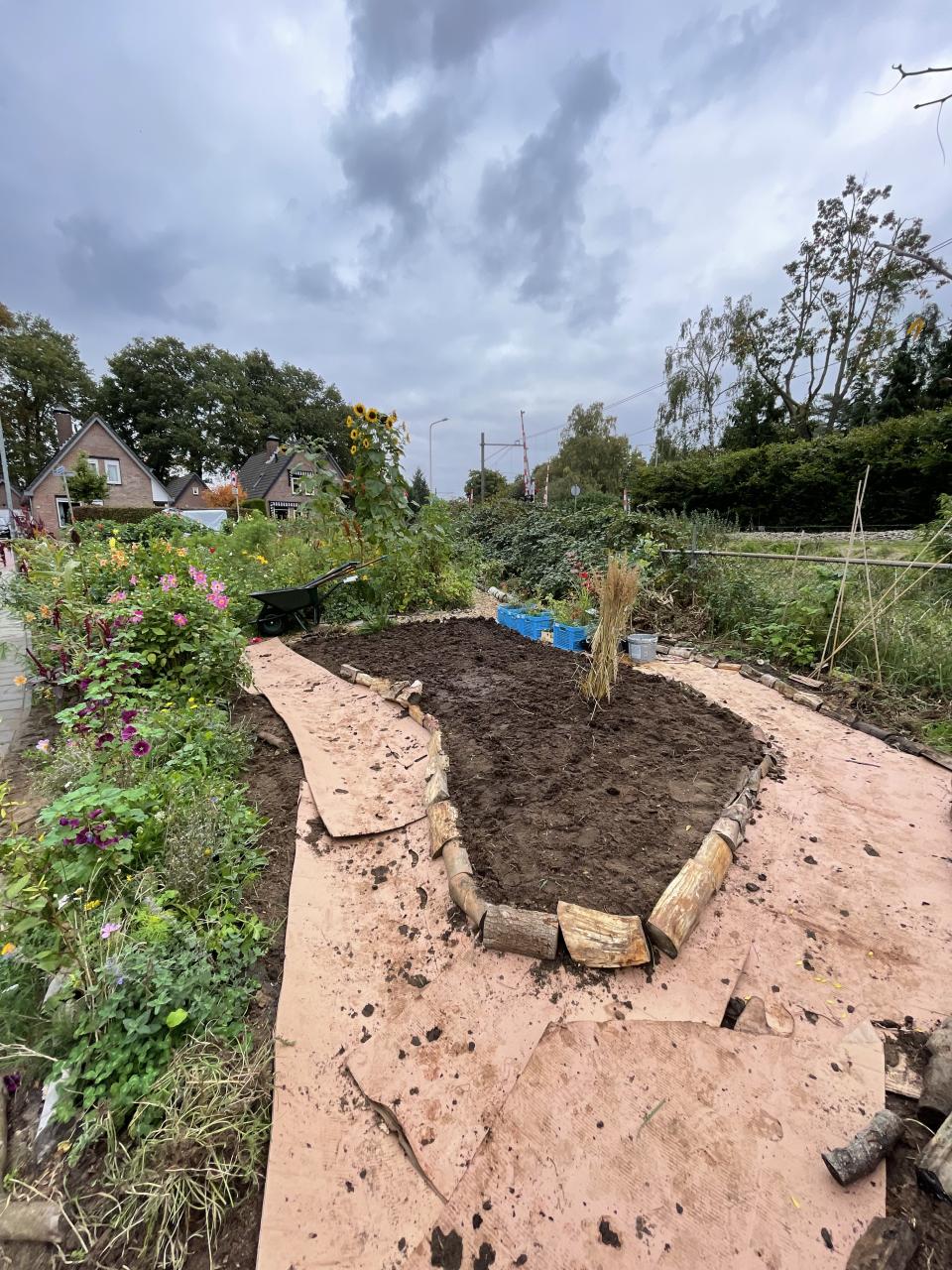Dankzij sponsoring van Veluwe plant konden we vandaag voor een mooi bedrag een hele lading vaste planten bij hen ophalen! Terwijl er nog volop geplukt wordt hebben we vandaag met een start gemaakt aan een nieuw planten-bed, waar deze nieuwe aanwinsten gaan komen. Met jong en oud hebben we gewerkt en gespeeld, kartonnen dozen gehaald bij de fietsenmaker, kevers gevonden, een mini-tuinkunstwerk gemaakt, mest gesjouwd en nog veel meer. Een prachtige herfstdag in de tuin!