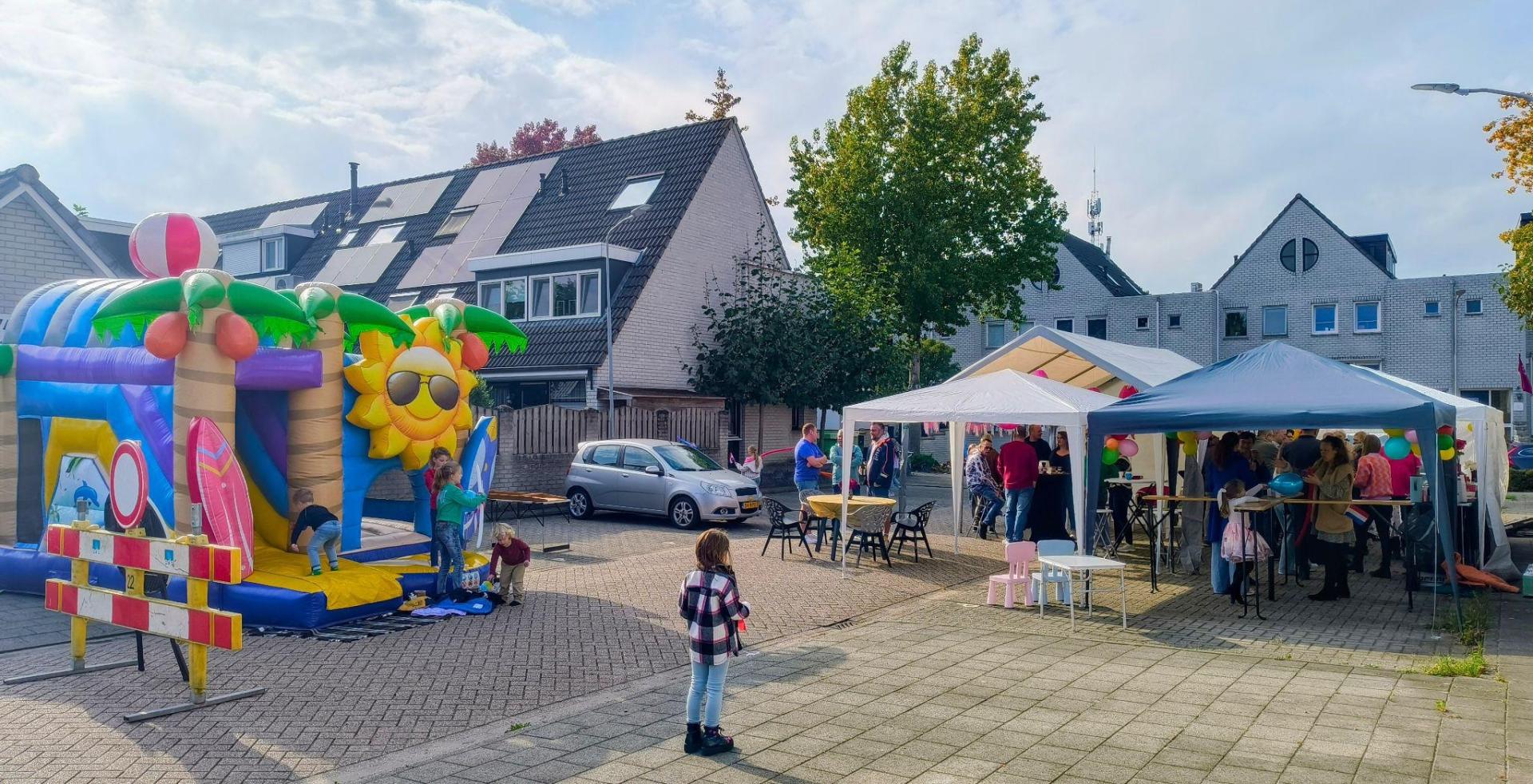 Na een aantal jaar gescheiden buurtfeesten te hebben gehad in dezelfde straat, hebben we dit jaar de organisaties met elkaar verbonden en hebben we een buurtfeest voor meer dan 50 huishoudens gehouden. Er vond echt ontmoeting plaats, waarbij je elkaar als buren op een andere manier kon leren kennen. Voor de kleintjes is er met de Ede Doet bonnen een springkussen geregeld.