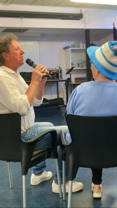 Johan heeft een geweldige stem en de feeling om mensen enthousiast te maken en mee te laten zingen en dansen. Wat een geslaagde middag!