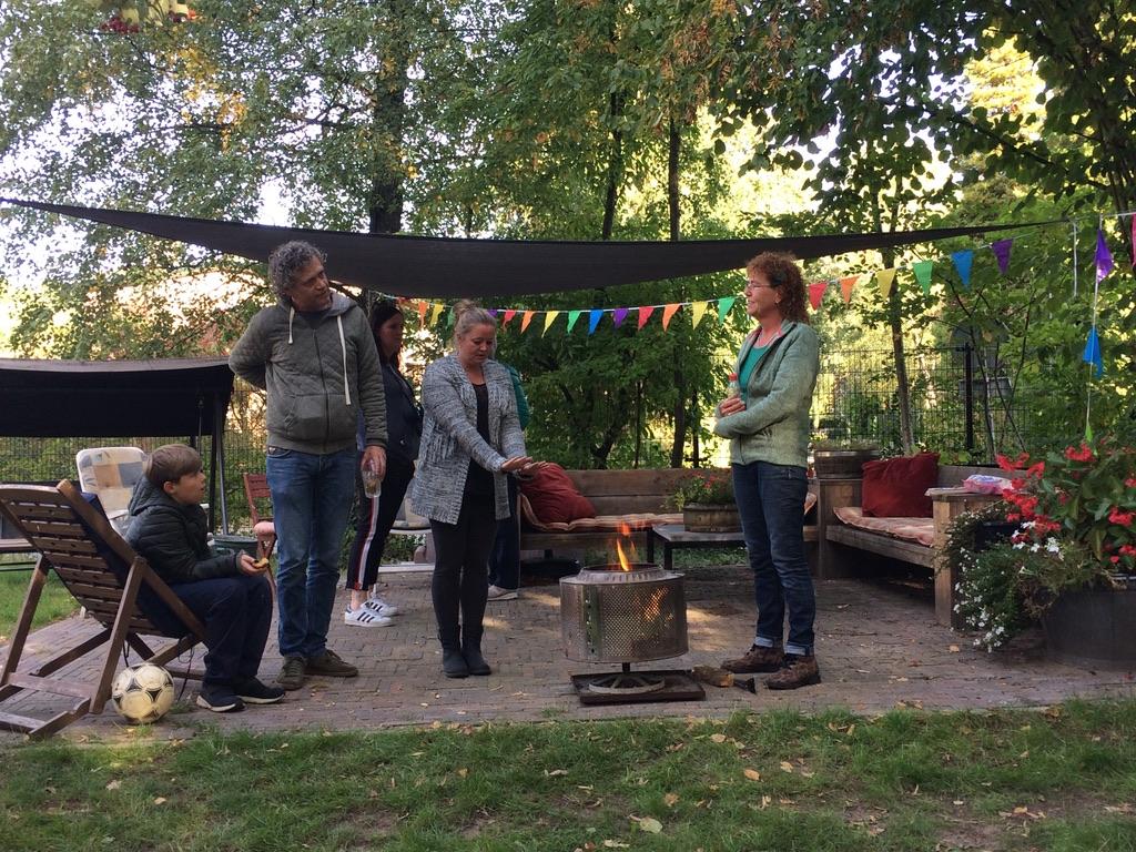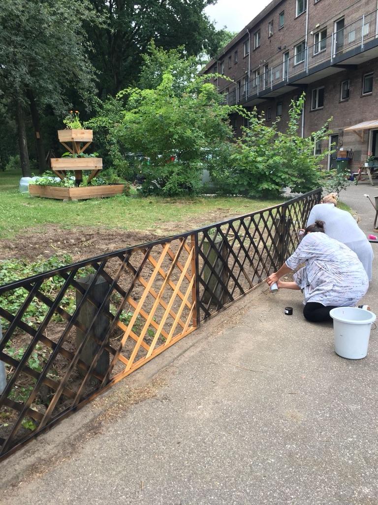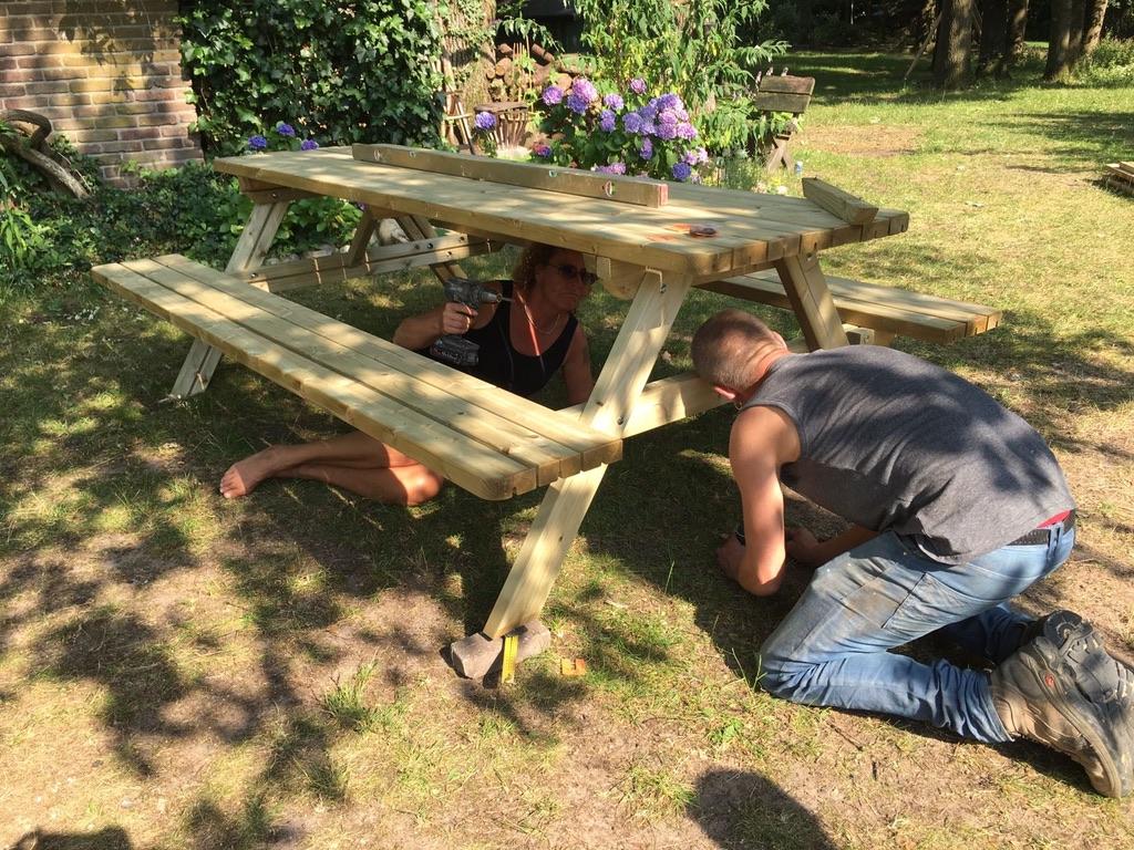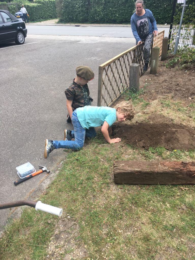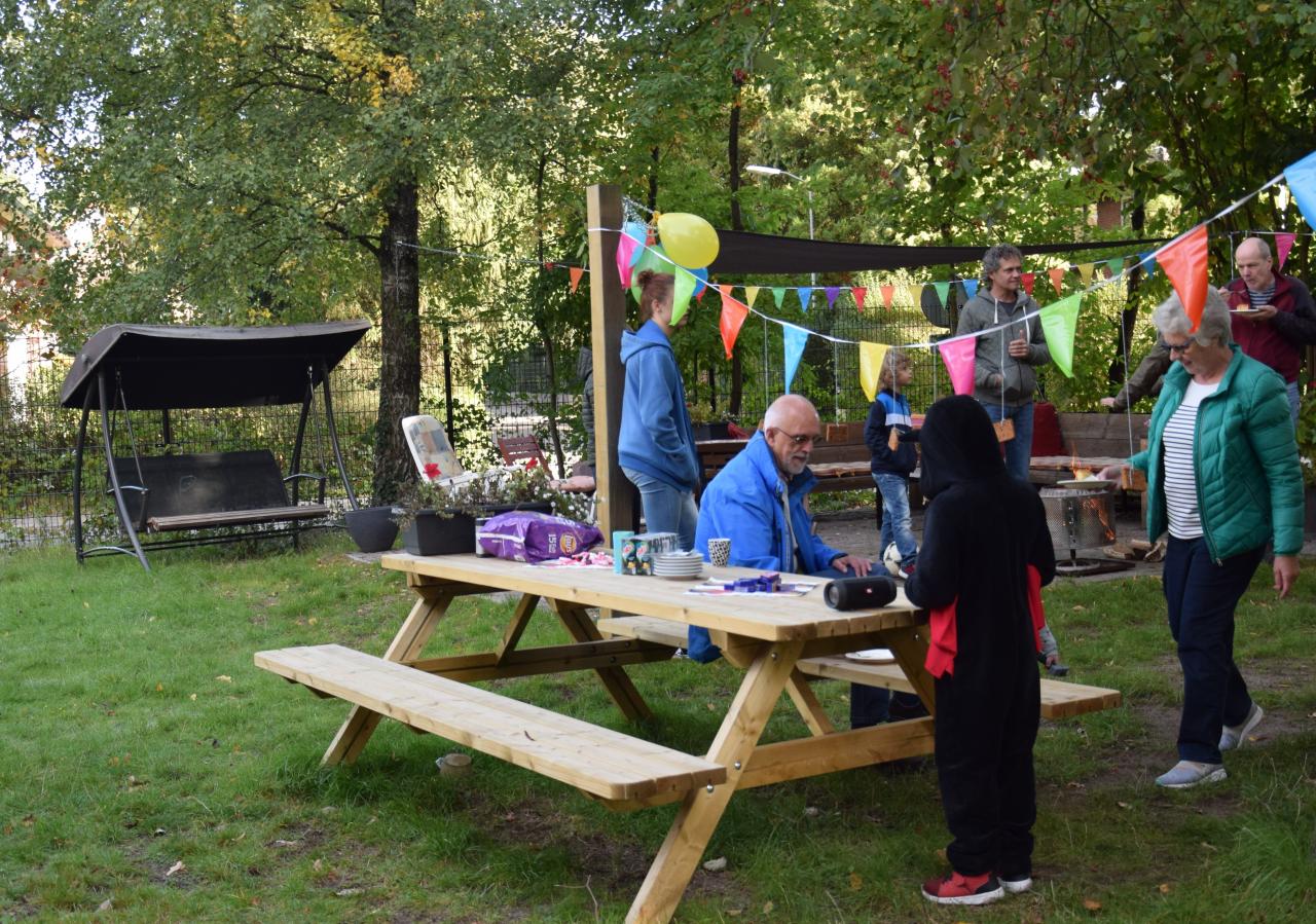 Dank zij de Ede Doet cheques hebben we de kans gekregen om onze gemeenschappelijke tuin, die met hard werken zelf hebben aangelegd DE finishing touch te geven! Vooral onze 2 picknicktafels waar wij zoveel gebruik van maken waren toe aan vervanging en dat is een behoorlijke kostenpost. Ook ons mooie terras had wat schaduw nodig en de kinderen hadden ook wel iets verdiend ;-).Het verzamelen van de cheques ging boven verwachting goed! En eindelijk konden we dan van start. We hadden het mooie weer mee dus met vrolijke moed zijn we weer aan de slag gegaan. Tafels en zandbak in elkaar zetten, paal voor het schaduwdoek erin en bevestigen en een omheining voor de zandbak als veiligheid. Ook is er een prachtige parasol aangeschaft voor bij de picknicktafels. Alle buren hebben hun steentje bijgedragen van daadwerk, doneren van materialen/beplanting tot een kopje koffie. Helaas moest onze ‘high tea’ wat worden uitgesteld. Maar dan eindelijk op zaterdag 29 september hebben wij met elkaar officieel ons Ede Doet project afgesloten. Er was thee, koffie, zelfgebakken cake, muziek, vuurtje met marshmallows en wat oud-hollandse spelletjes voor de kids. Wij zijn heel erg blij en tevreden met het resultaat en ook heel trots op onze buurtjes, dat wij dit met elkaar hebben gedaan. Gelukkig blijft het hier niet bij en zijn we het harde werken nog niet moe. Het plan is om volgend jaar een buiten barbecue van steen te bouwen, wie weet kan Ede Doet ons daar weer een flinke hand mee helpen! Namens ons allemaal; hartelijk bedankt Ede Doet voor deze kans en wij moedigen alle andere Edenaren aan ook een initiatief te starten!